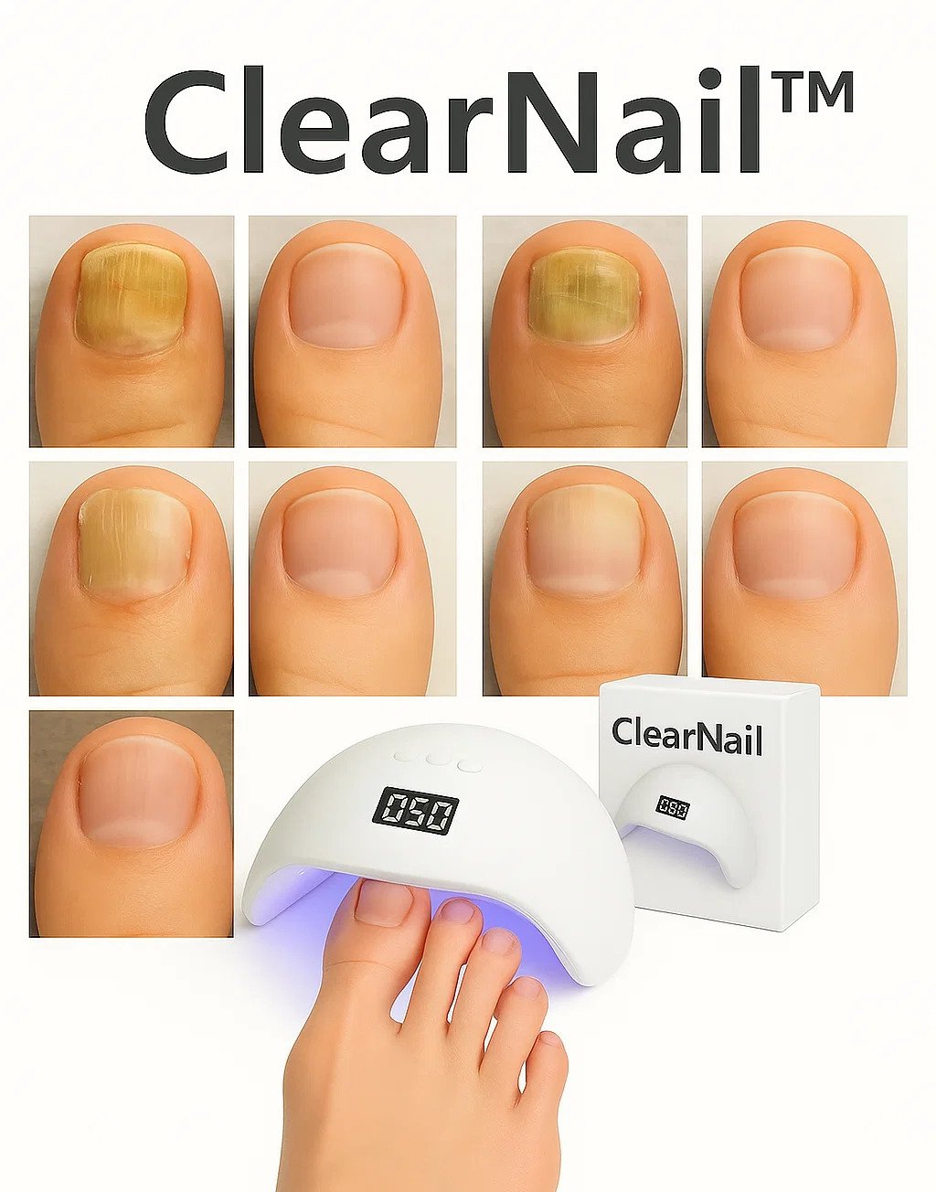 Com apenas alguns minutos por dia, o ClearNail™ trata os fungos sem dor, sem medicamentos e com resultados reais em poucas semanas — direto do conforto da sua casa.